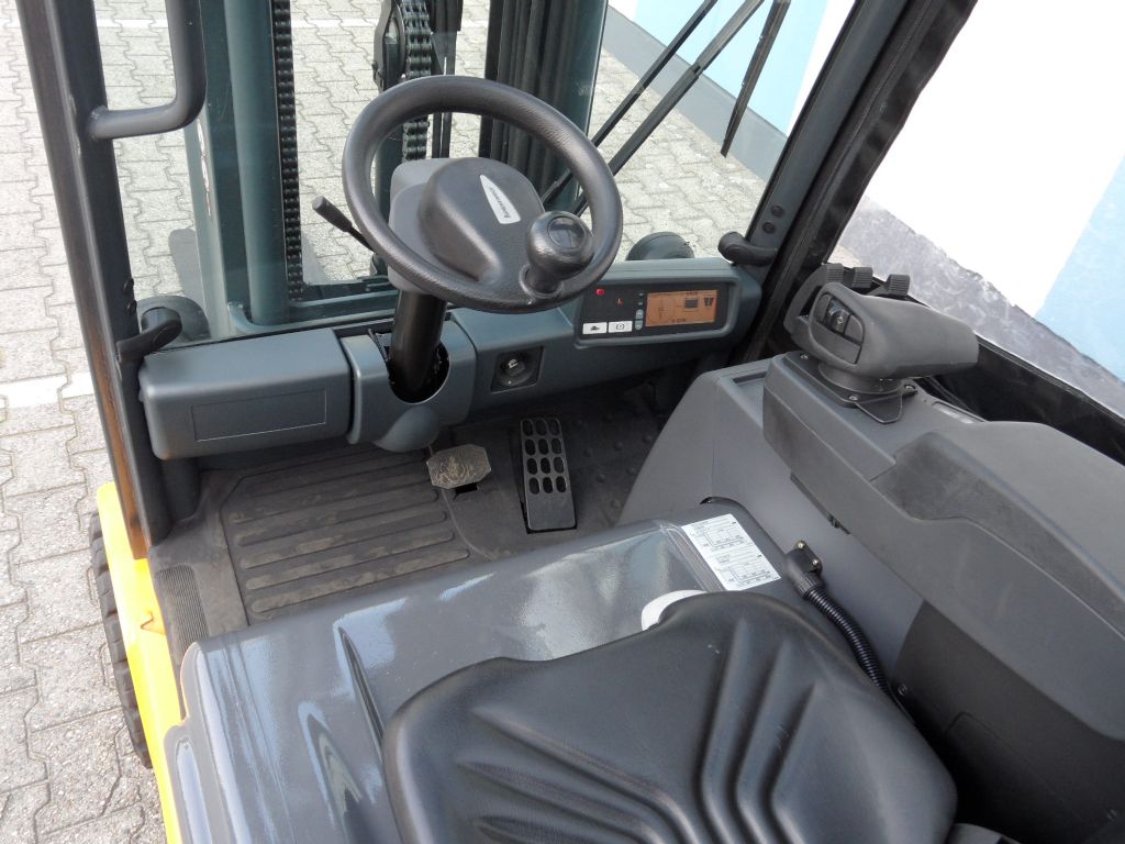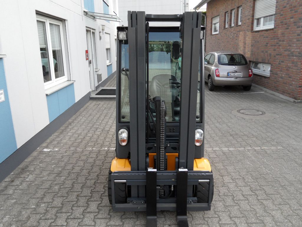 Mast: Triplex Hubhöhe: 4250 mm Bauhöhe: 1982 mm Freihub: 1250 mm Gabellänge: 1200 mm |