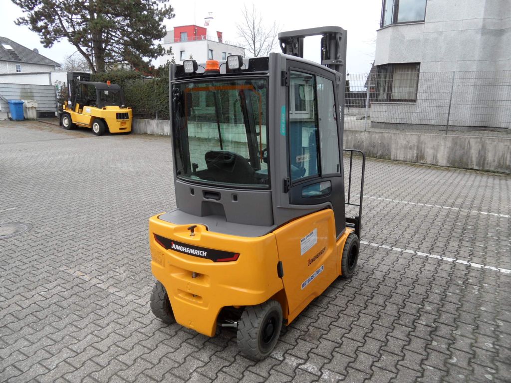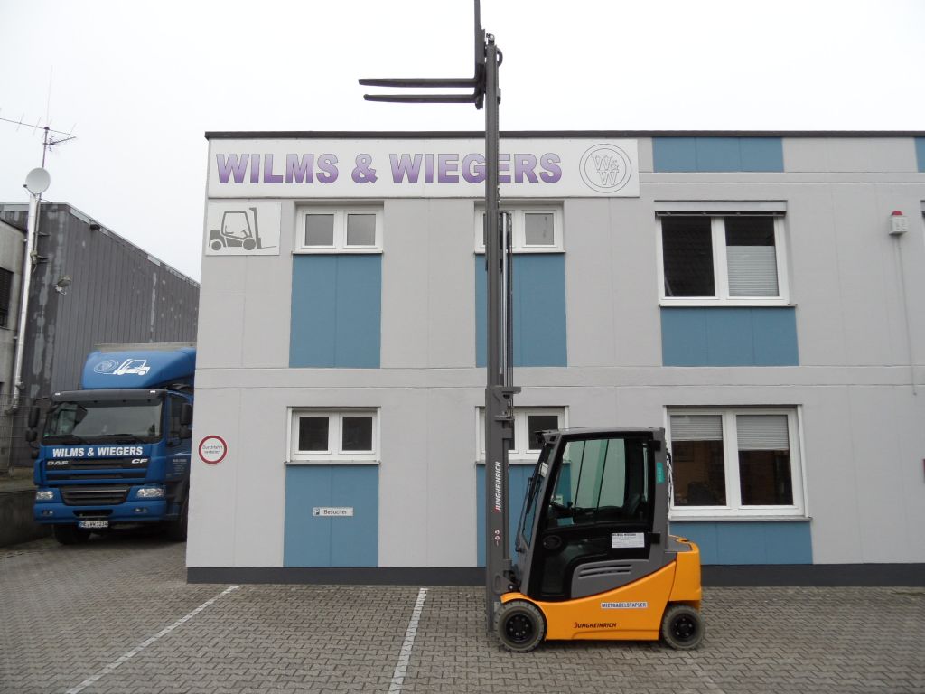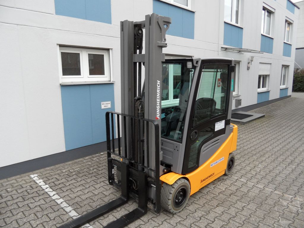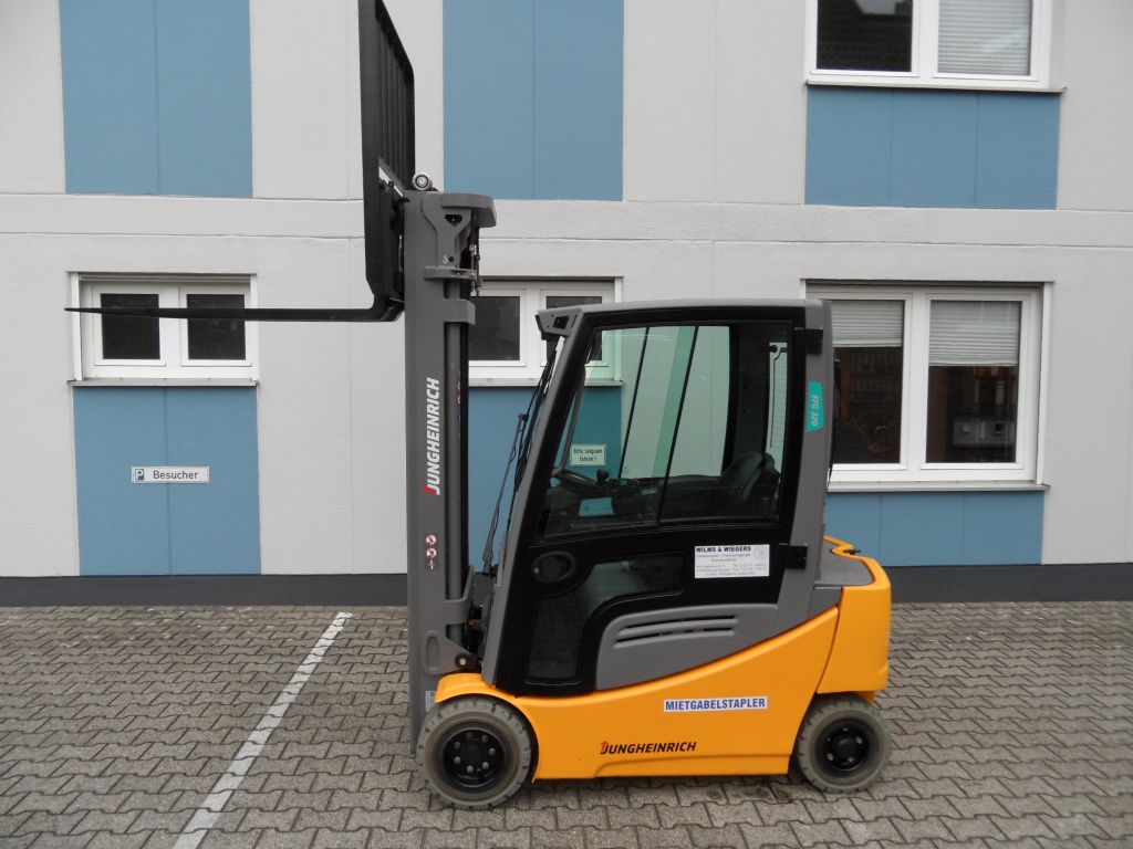 Hersteller: Jungheinrich Typ: EFG 320 - Triplex - Kabine - weiße Reifen Bauart: Elektro 4 Rad-Stapler Antriebsart: Elektro Tragkraft: 2000 kg Zustand: sehr gut |